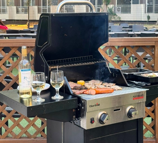 쉘터 외부에는 가스그릴이 설치되어 있어, 이곳에서 불맛 가득한 바비큐를 직접 구워 먹을 수 있습니다