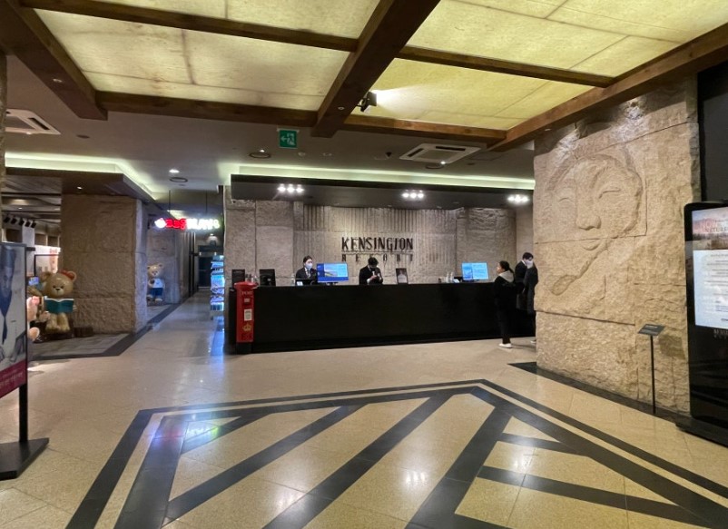 경주 켄싱턴 리조트는 건물이 오래된 편이지만, 각 층마다 부분 리모델링이 진행 중이었습니다. 이미 리모델링이 완료된 객실은 예약 시 리모델링룸이라고 표기되어 있습니다. 저희가 선택한 객실은 일반 4인 디럭스룸이었는데, 처음에는 노후화된 건물 때문에 걱정했지만, 객실에 들어서니 생각보다 훨씬 괜찮아서 만족스러웠습니다.