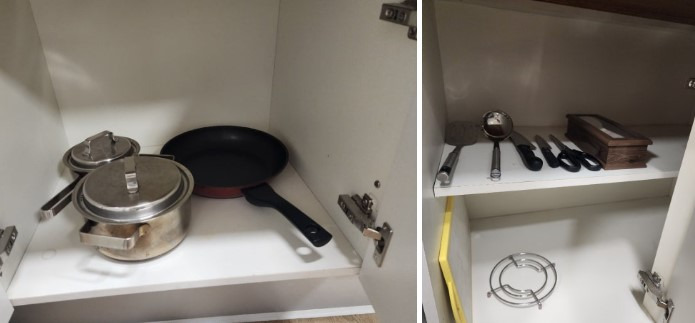 부엌에는 간단한 요리를 할 수 있는 조리 도구가 준비되어 있어, 필요에 따라 음식을 만들어 먹을 수 있었습니다. 여행 중 직접 요리를 해 먹고 싶은 분들께는 이 점이 큰 장점이 될 것 같습니다.