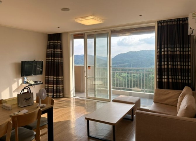 발코니에서는 경주의 아름다운 자연경관을 한눈에 감상할 수 있었습니다. 발코니에서 바라본 마운틴뷰는 정말 인상적이었는데요, 멀리 펼쳐진 산들이 일상의 스트레스를 날려주는 듯한 느낌이 들었습니다. 특히 아침이나 저녁 시간에 발코니에서 경치를 감상하며 가족과 함께 시간을 보내기에 딱 좋았습니다.