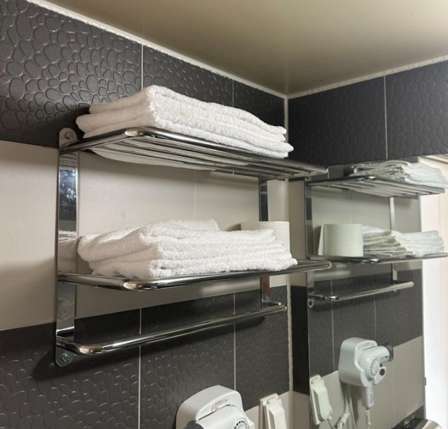 욕실 어메니티로는 샴푸, 린스, 바디워시가 제공되었는데, 향도 좋고 품질도 나쁘지 않았습니다. 보통은 집에서 직접 어메니티를 챙겨가는 편이지만, 이곳에서는 리조트에서 제공된 어메니티를 그대로 사용해도 괜찮았습니다. 수건도 넉넉하게 제공되었으며, 만약 부족하다면 리셉션에 요청하면 추가로 받을 수 있어 편리했습니다.
