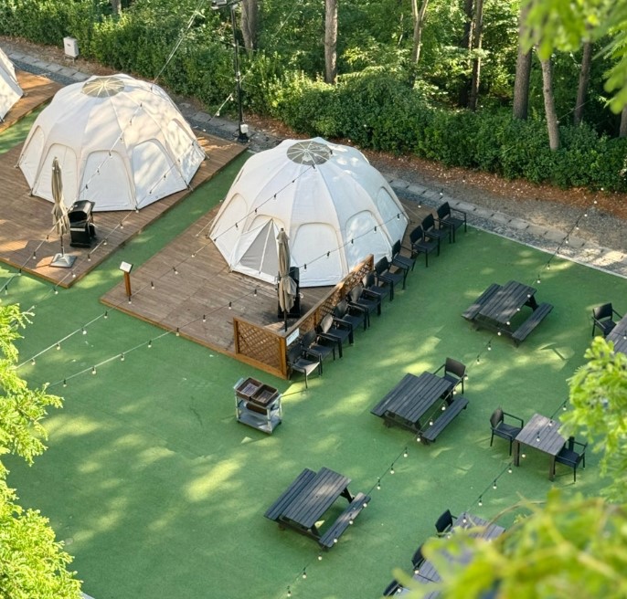 캠프닉 빌리지는 서관 뒤편에 위치한 숲속 쉘터에서 프라이빗하게 바베큐를 즐길 수 있는 공간입니다. 가족이나 친구들과 함께 둘러앉아 자연 속에서 맛있는 음식을 즐기며 소중한 시간을 보낼 수 있어요.