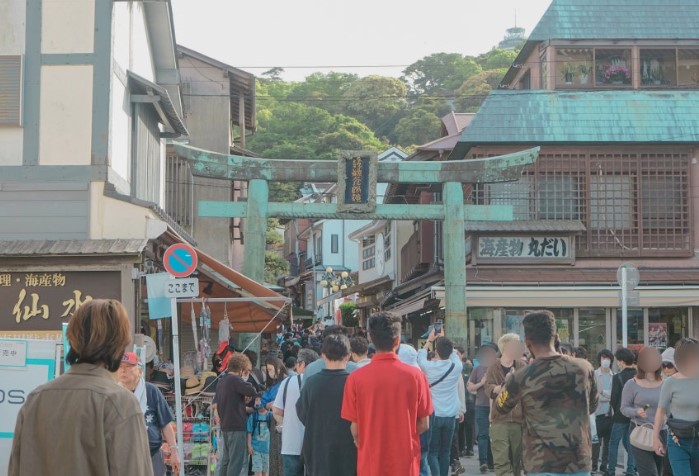 신사에서 내려와 가마쿠라역 상점가에서 먹방 투어를 즐긴 후, 마지막으로 에노시마역으로 갔습니다. 에노시마는 바다와 신사, 자연이 어우러진 아름다운 장소로, 가마쿠라와 함께 여행하기에 좋은 곳이에요.