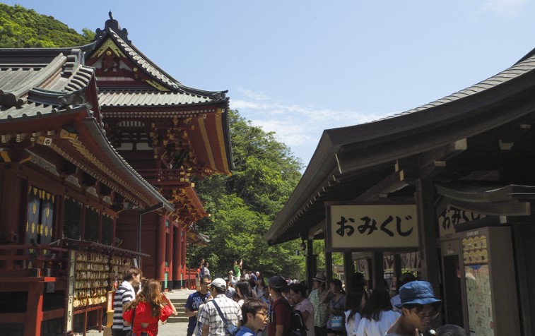 상점가를 쭉 걷다 보면 쓰루가오카 하치만구 신사가 나타납니다. 이곳은 가마쿠라의 상징적인 신사로, 많은 관광객이 방문하는 명소입니다.