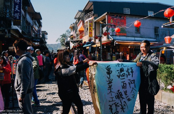 스펀 기찻길 마을은 소원을 담은 천등을 날리는 곳으로 유명합니다. 이곳에 도착하자마자, 여러 가게에서 판매하는 천등을 구입하여 하늘로 띄우는 기회를 가졌습니다.