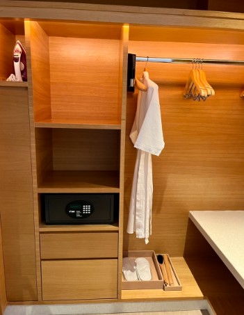 또한 금고와 다리미도 비치되어 있어 중요한 물건을 안전하게 보관할 수 있었고, 필요한 경우 옷을 다려서 깔끔하게 입을 수 있었습니다. 특히 다양한 여행지에서 찍은 사진에 신경 쓰시는 분들께는 다리미가 큰 도움이 될 것입니다.