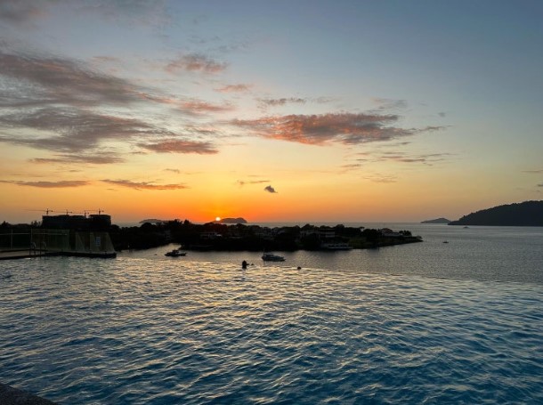 코타키나발루는 세계 3대 일몰 명소로도 잘 알려져 있는데, 이 호텔 수영장에서 보는 일몰은 정말 황홀했습니다. 하늘이 오렌지빛으로 물들기 시작하면 어느새 주변이 조용해지며, 오직 자연의 장관에 집중하게 됩니다. 특히 일몰 시간에 맞춰 수영을 하며 바라본 선셋 뷰는 잊을 수 없는 아름다움으로 남아 있어요.