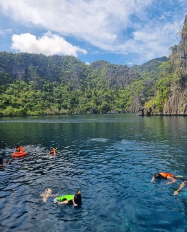 점심 식사 후에도 여러 포인트에서 수영을 즐길 수 있었는데요, 대략 6~7개의 스팟을 돌며 코론의 바다를 만끽했습니다. 계속되는 수영과 물놀이에 몸은 조금 지쳤지만, 너무나 맑은 물속에서 자유롭게 수영하는 기분은 최고였어요. 평소 물놀이를 좋아하는 분들에게는 잊을 수 없는 추억이 될 겁니다.