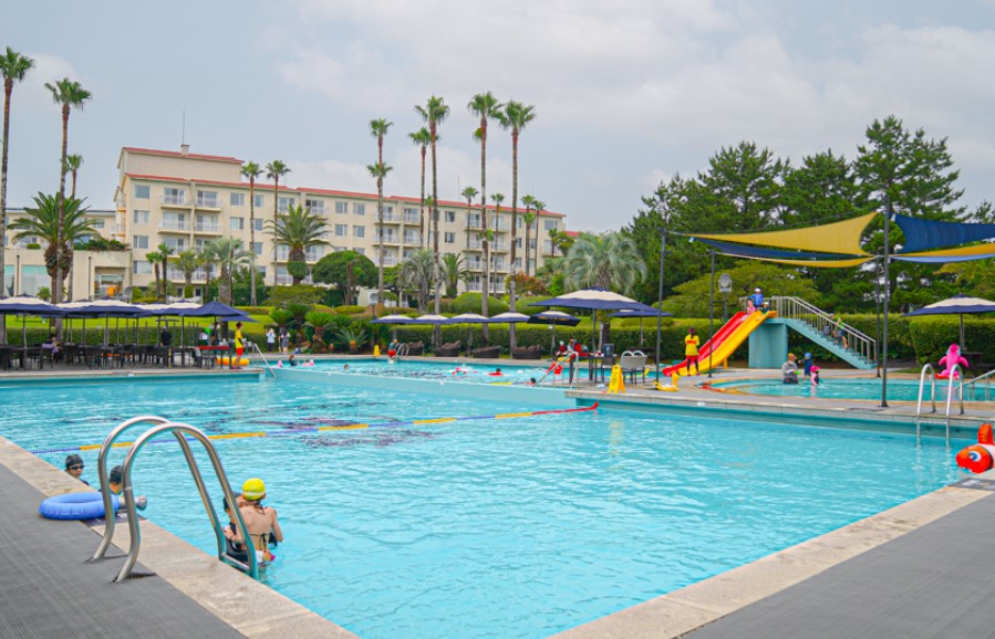 켄싱턴리조트 서귀포점의 야외 수영장은 09:00부터 18:00까지 운영됩니다. 제주도의 뜨거운 태양 아래에서 하루 종일 물놀이를 즐길 수 있어, 더운 날씨에 휴식을 취하며 즐기기에 딱 좋은 시설입니다.