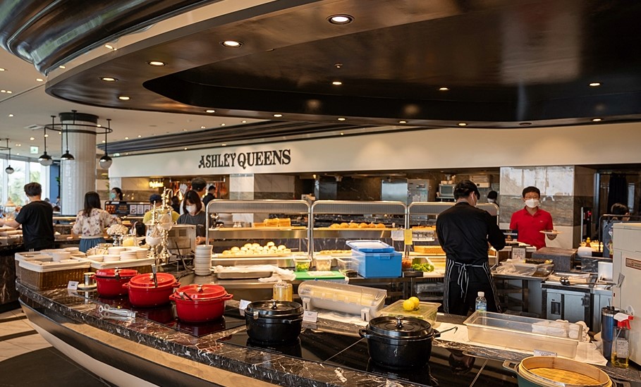 1층에 위치한 애슐리퀸즈에서는 매일 아침 조식 뷔페가 제공됩니다. 특히, 이곳에서 식사를 하며 바라보는 오션뷰는 정말 일품입니다. 신선한 제주도 특산물을 활용한 다양한 메뉴가 준비되어 있어 아침 식사부터 든든하게 시작할 수 있습니다.