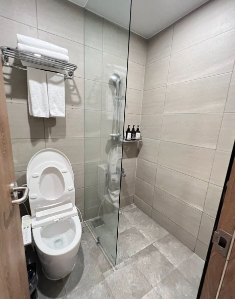 다만, 화장실에 창문이 없어 환기 면에서는 조금 아쉬운 부분이 있습니다. 하지만 그 외에는 전체적으로 무난하고, 여행 중 기본적인 욕실 용도로는 충분히 적합합니다.
