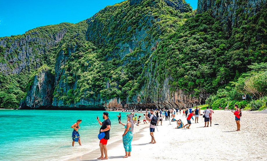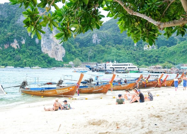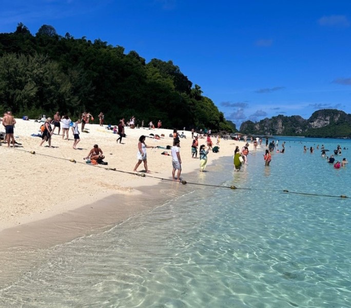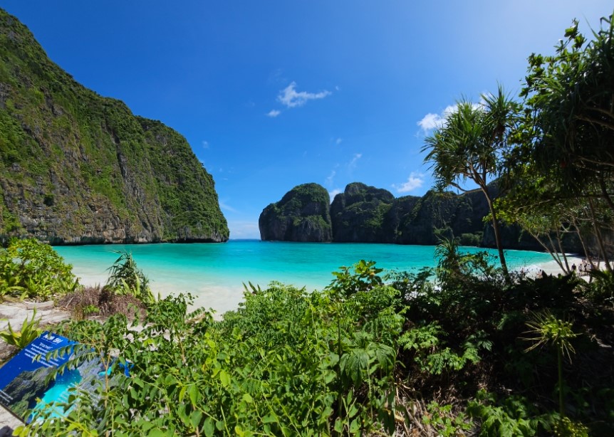 마야섬에 도착하자마자, 에메랄드빛 바다와 하얀 모래사장이 맞이해 주었습니다. 이곳은 영화 "더 비치"의 촬영지로도 유명한 곳으로, 많은 관광객들이 이 멋진 풍경을 경험하기 위해 찾는다고 합니다.