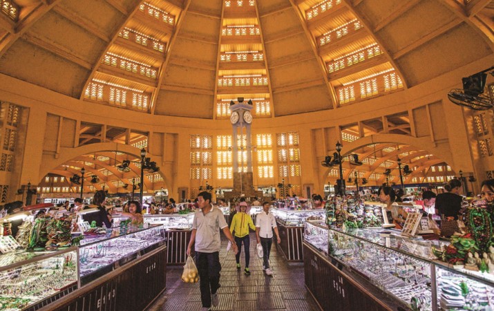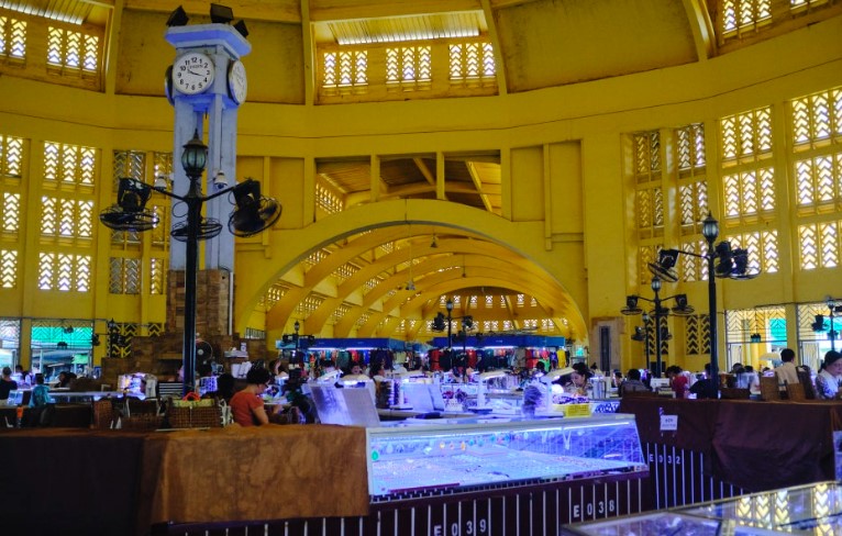 프놈펜의 센트럴 마켓은 독특한 돔 모양의 건축물로, 캄보디아를 대표하는 쇼핑 명소 중 하나입니다.