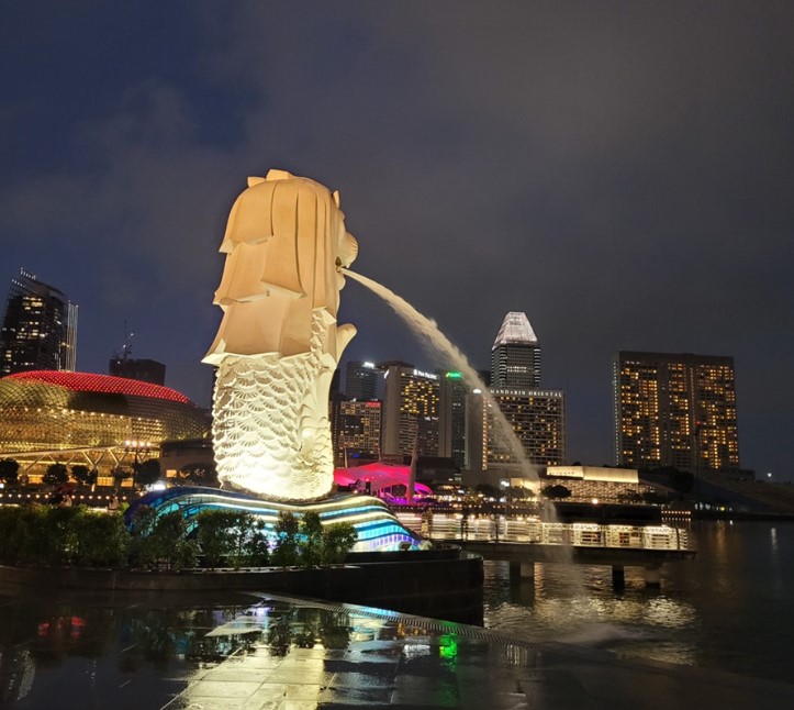 싱가포르의 대표적인 상징인 사자와 물고기가 합쳐진 모습의 머라이언 동상 앞에서 기념사진을 찍으며 싱가포르에 온 것을 실감했습니다.