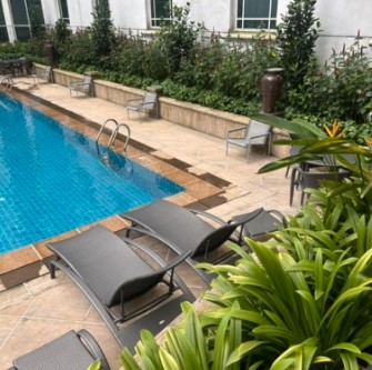 수영장 옆에는 넓은 썬 베드가 충분히 준비되어 있어 아침에 여유롭게 즐길 수 있었어요. 아이들이 사용할 수 있는 작은 풀장도 있어 가족 단위 여행객들에게 추천할 만했습니다.