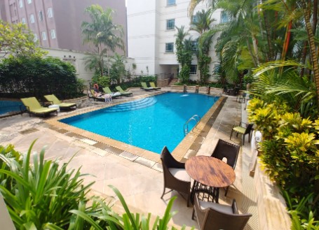수영장은 깊이가 깊지 않아서 간단하게 수영을 즐기기에 좋고, 물 온도도 시원해서 여행 중간에 더위를 식히기에 제격이었습니다.