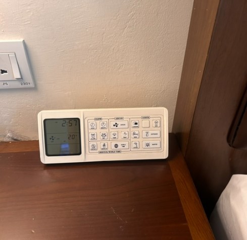 TV는 다국어 채널을 제공해 가족 모두가 각자의 취향에 맞는 프로그램을 즐길 수 있었습니다. 또 책상 옆에는 멀티플러그가 설치되어 있어 별도의 어댑터 없이 다양한 전자기기를 충전할 수 있어 편리했습니다.