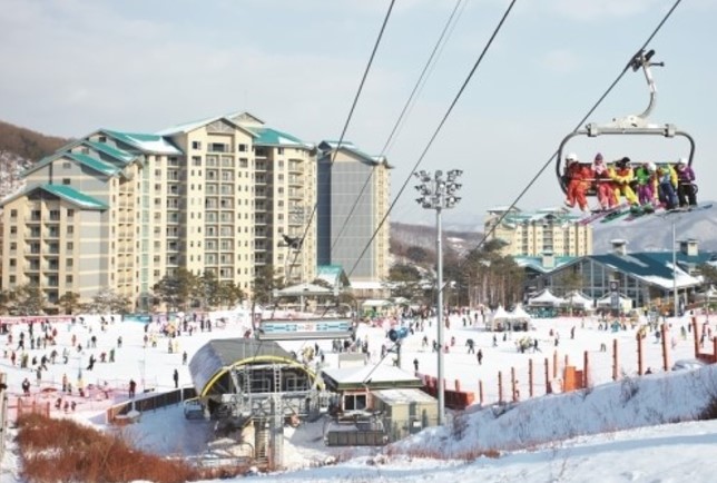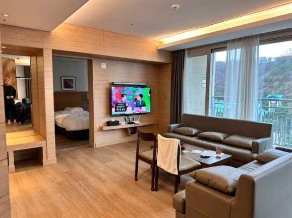 곤지암 리조트의 콘도는 호텔급의 시설과 서비스를 제공하며, 객실에서 창밖으로 보이는 설경이 겨울의 낭만을 더합니다.