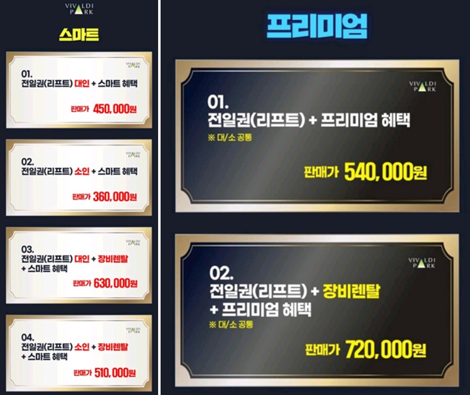 비발디파크 시즌권 종류 및 가격 안내