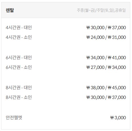 리프트권 및 렌탈 요금
