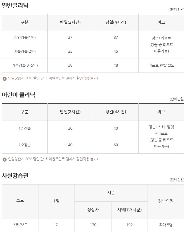 2024~2025 곤지암리조트 스키장 눈썰매장 개장 시즌권 가격 예약 안내 (0) | 2024.11.20 |