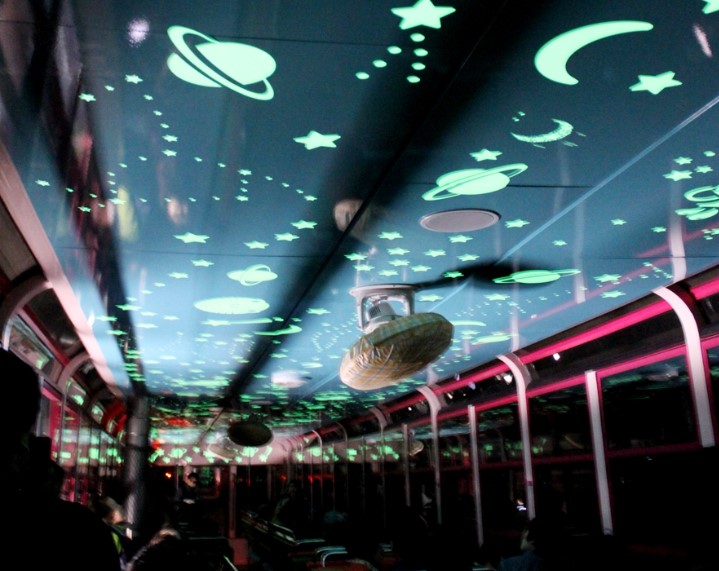 터널을 통과할 때 천장에 비치는 별빛 스티커와 아늑한 좌석은 낭만적인 분위기를 더합니다.