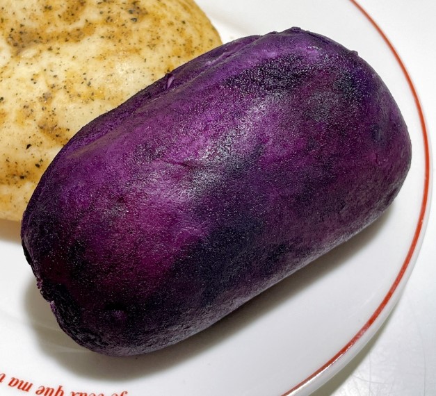 겉은 바삭하고 속은 포슬포슬한 감자가 꽉 차 있어 고소한 맛이 입안을 가득 채웁니다. 짭짤한 맛이 고구마빵의 단맛과 대비되어 함께 먹으면 더 맛있습니다.