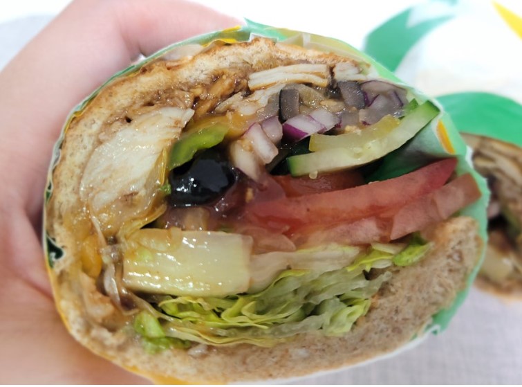 데리야끼 소스가 닭가슴살에 스며들어 있어 한입 먹을 때마다 달콤한 맛이 퍼집니다. 소스가 흘러내리지 않아 깔끔하게 먹을 수 있다는 점도 장점입니다.
