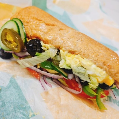 심플하면서도 누구나 좋아할 수 있는 맛으로, 계란 샐러드가 듬뿍 들어간 메뉴입니다.