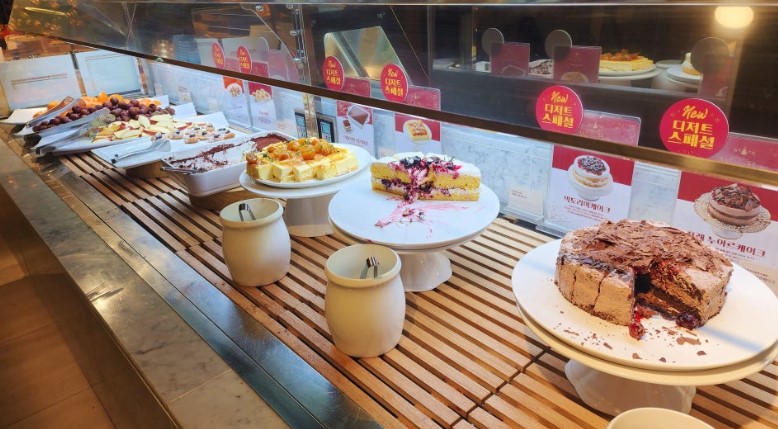 디저트 코너에서는 아이스크림과 케이크를 무제한으로 즐길 수 있습니다. 특히 라즈베리 피스타치오 푸딩은 제가 제일 좋아하는 디저트로, 달콤하고 부드러운 맛이 너무 좋았어요.