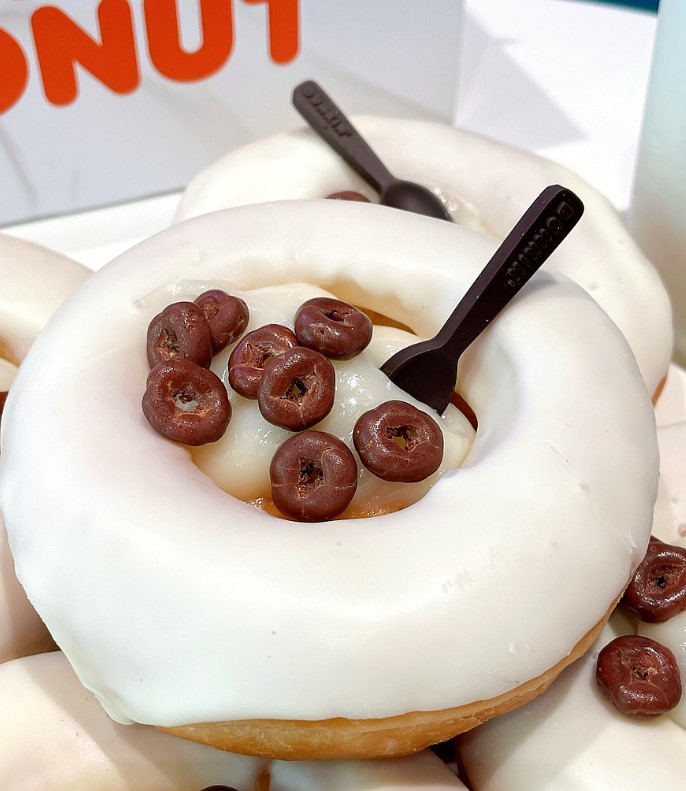켈로그 콘푸로스트 우유도넛은 이름 그대로 콘푸로스트의 바삭함과 도넛의 폭신함이 조화를 이루는 독특한 메뉴입니다. 고소하면서도 달달한 맛이 특징으로, 우유와 함께하면 더욱 맛있게 즐길 수 있어요.