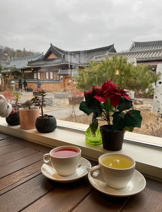 한옥마을 내 전통 찻집에서는 따뜻한 유자차를 마시며 얼어붙은 몸과 마음을 녹일 수 있습니다.