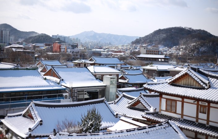 전주의 대표적인 명소인 전주 한옥마을은 겨울철 눈이 내리면 더욱 특별한 모습을 선보입니다. 전통 한옥 지붕 위로 소복이 쌓인 눈과 고즈넉한 골목길을 거닐다 보면 마치 시간 여행을 하는 듯한 기분이 듭니다.