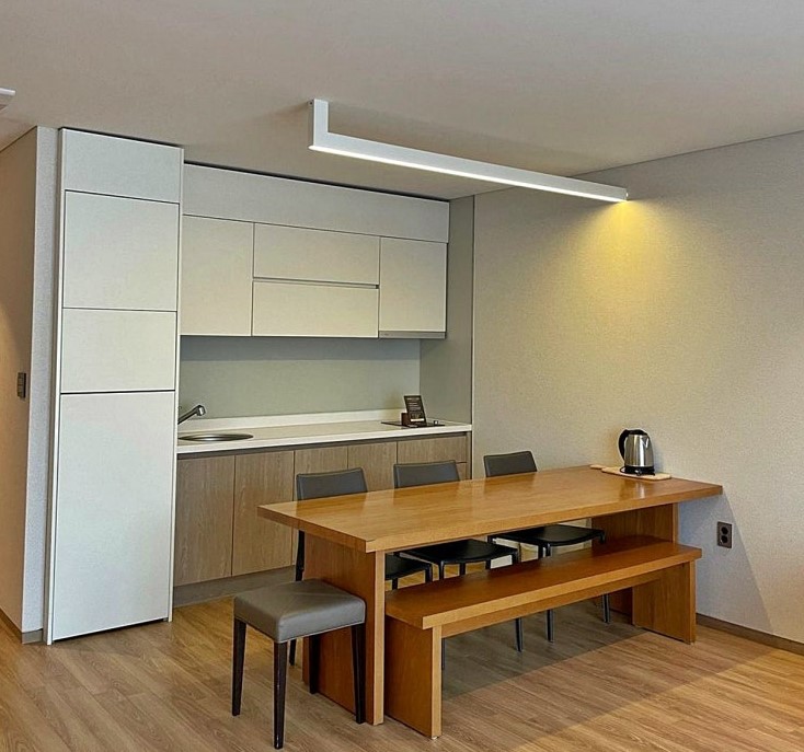 패밀리 스파룸에는 주방 시설이 있지만 취사가 불가능한 점이 조금 아쉬웠습니다. 하지만 음식을 객실로 포장해 올 수 있고, 리조트 내의 셀프 다이닝룸을 이용할 수도 있어 큰 불편함은 없었습니다.
