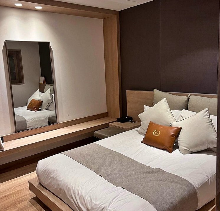 거실과 침대방은 슬라이딩 도어로 구분되어 있어, 공간 활용이 유연하며 프라이버시를 지킬 수 있는 점이 인상적이었습니다. 침대는 더블 사이즈로 넉넉했고, 침구류는 뽀송뽀송하고 깔끔하게 관리되고 있었습니다.