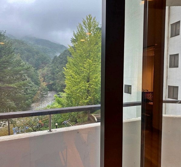 패밀리 스파룸의 또 다른 매력은 객실 창밖으로 보이는 자연 풍경입니다. 울진의 아름다운 산과 계곡이 눈앞에 펼쳐져 마치 자연 속에서 머무는 듯한 느낌을 주었습니다.