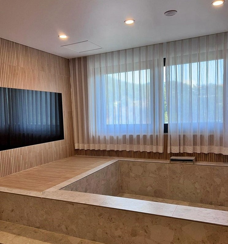 패밀리 스파룸의 하이라이트는 바로 객실 내에 마련된 가족탕입니다. 이곳은 가족이 프라이빗하게 온천욕을 즐길 수 있는 공간으로, 넓은 욕조와 세심하게 배려된 구조가 돋보였습니다.