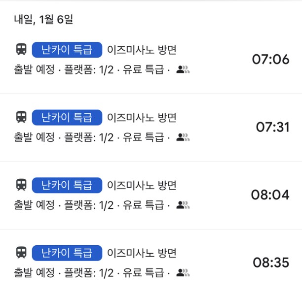 중간에 난바역으로 돌아올 필요 없이 바로 공항으로 이동 가능