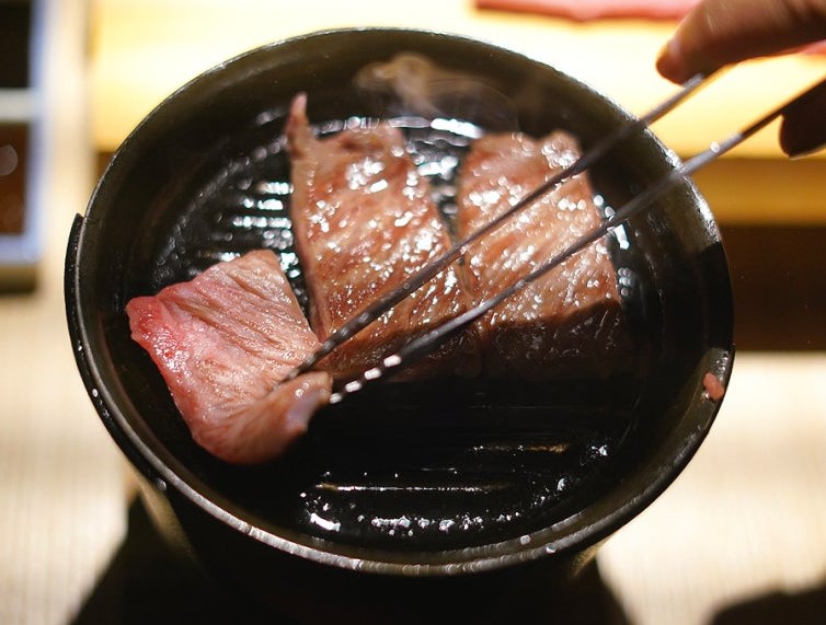 보테쥬에서 즐길 수 있는 고급스러운 와규 스테이크는 정말 일품입니다. 마블링이 가득한 와규를 철판에서 구워낸 후, 세 가지 소스와 함께 제공됩니다. 고기의 부드러움과 풍미가 일품이죠.