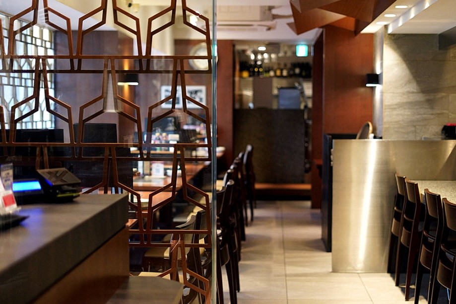 이곳의 분위기는 매우 독특하고, 전통과 현대가 어우러진 느낌입니다. 대부분의 테이블에는 철판이 놓여 있어 음식이 따뜻하게 유지됩니다. 또한, 라이브 카운터석도 마련되어 있어 혼자 방문하는 사람들도 편안하게 식사를 즐길 수 있습니다.