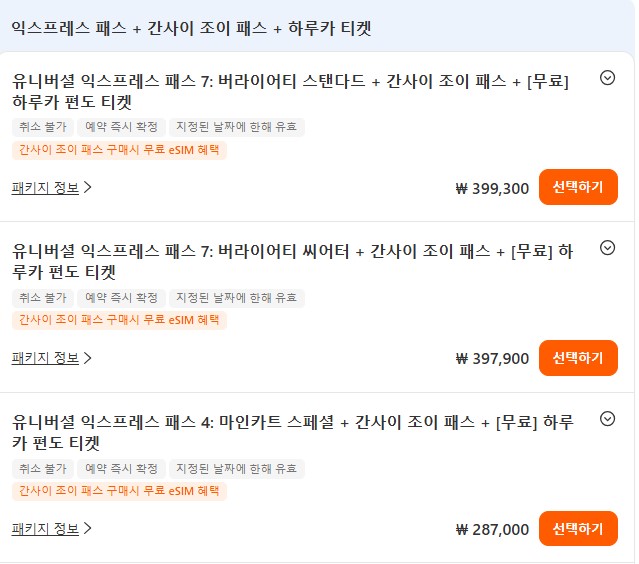 일정에 맞는 티켓 옵션 선택.