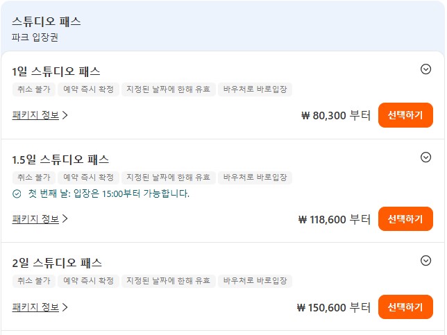 1일권, 1.5일권, 2일권, 트와일라잇 패스뿐만 아니라 익스프레스 패스까지 함께 구매할 수 있습니다.
