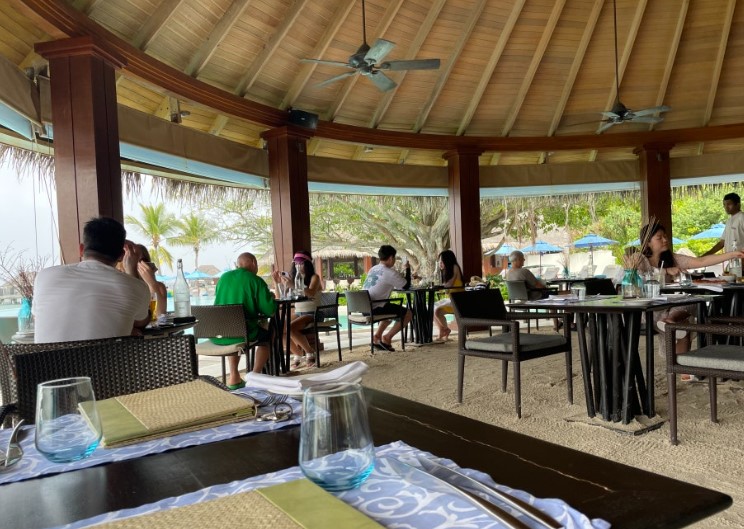 수상 비행기를 타는 것 자체가 하나의 액티비티처럼 느껴졌고, 특히 처음 타본 경험이라 그런지 색다른 즐거움을 느낄 수 있었습니다. 비행기에서 내리면 리조트 직원들이 따뜻하게 맞아주며 웰컴 드링크와 차가운 타월을 제공해줍니다. 그 순간, 몰디브에서의 휴가가 본격적으로 시작되었음을 느꼈습니다.