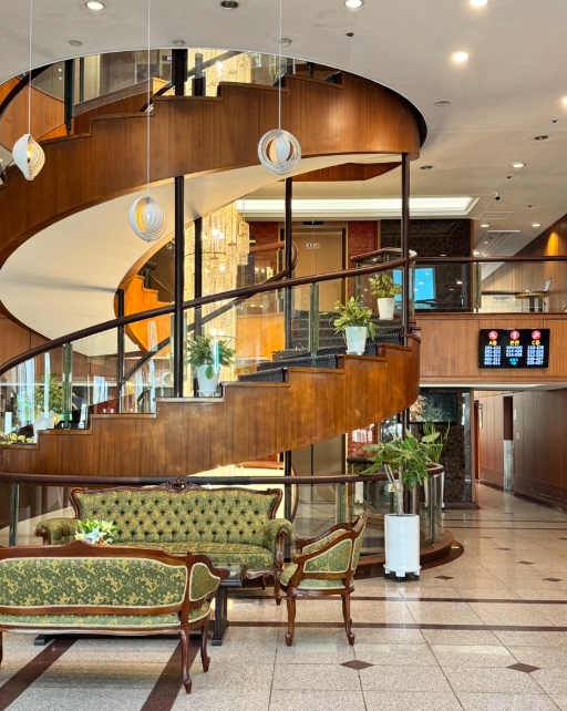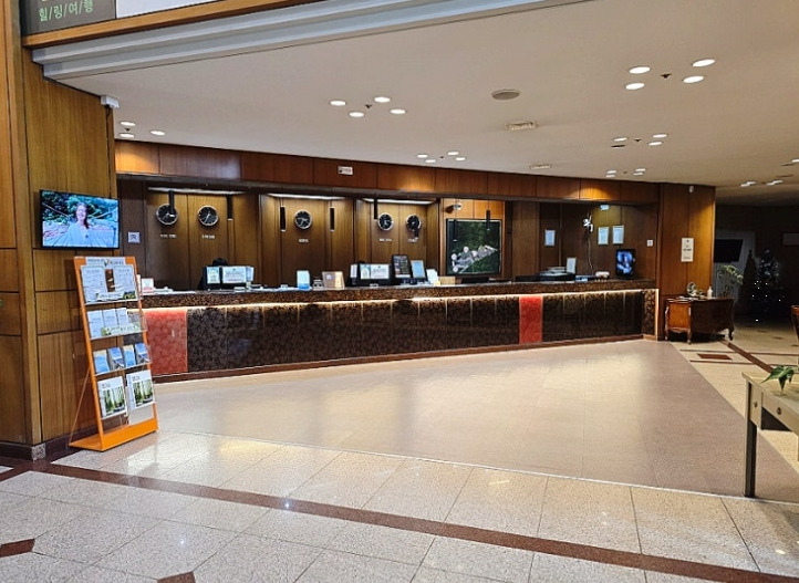 오후 5시 반쯤 호텔에 도착했어요. 체크인을 하고 온천 쿠폰을 받아 숙소로 이동했는데, 확실히 90년대 느낌이 나는 호텔이었어요. 하지만 내부는 생각보다 깔끔해서 크게 불편한 점은 없었어요.