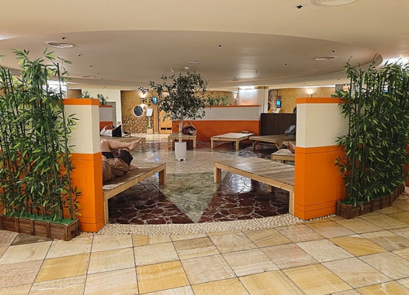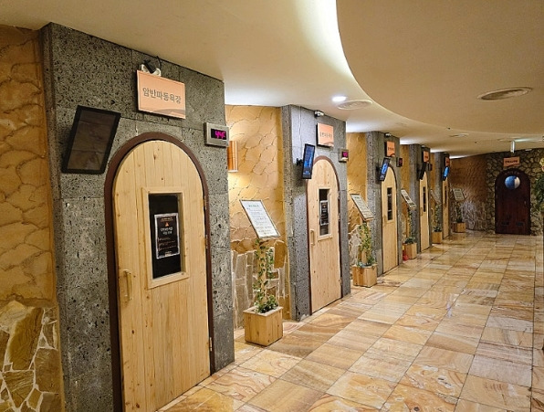 온천욕을 마친 후 찜질방을 이용하였습니다. 찜질방 내부에는 다양한 테마 방이 마련되어 있어 하나씩 체험해 보았습니다.