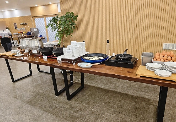 다만, 음식 종류가 아주 다양한 편은 아니었어요. 고급 호텔 수준의 조식은 아니었지만, 기본적인 메뉴는 잘 갖춰져 있어서 든든한 아침을 먹기에는 충분했습니다.
