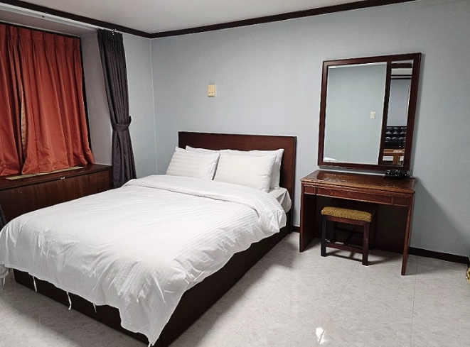 방은 전체적으로 널찍해서 4인이 묵기에도 부족함이 없었습니다. 다만, 더블 침대의 크기가 성인 2명이 자기에는 다소 좁았어요. 결국 저는 여분의 이불을 바닥에 깔고 잤습니다.