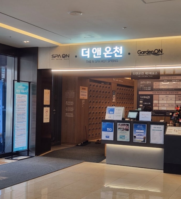 로비에서는 편의점과 카페 라운지로 이어지는 통로도 연결되어 있어, 체크인 후 바로 간단한 음료를 즐기거나 필요한 물품을 구매할 수 있었어요. 스파 이용권을 받으면, 로비에서 바로 온천 시설에 대한 위치와 이용 시간 안내를 받을 수 있어, 온천을 즐길 때도 편리하게 안내를 받았습니다.