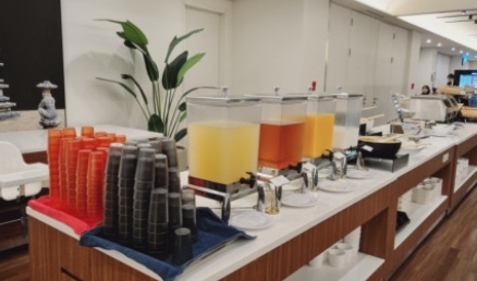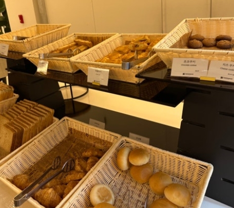 또한, 커피, 우유, 주스와 같은 음료도 준비되어 있어 아침을 더욱 풍성하게 만들어주었어요.