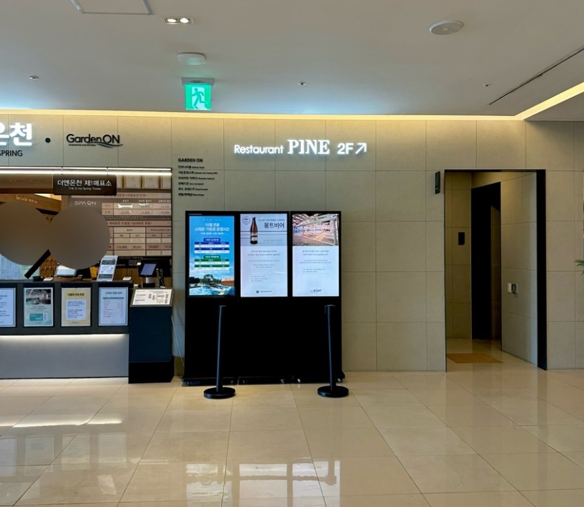 로비에서는 편의점과 카페 라운지로 이어지는 통로도 연결되어 있어, 체크인 후 바로 간단한 음료를 즐기거나 필요한 물품을 구매할 수 있었어요. 스파 이용권을 받으면, 로비에서 바로 온천 시설에 대한 위치와 이용 시간 안내를 받을 수 있어, 온천을 즐길 때도 편리하게 안내를 받았습니다.